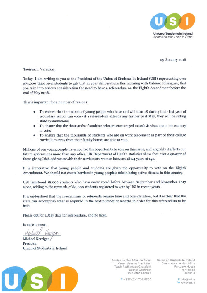 We’ve issued letters to all members of Taoiseach Leo Varadkar T.D’s Cabinet asking that a referendum to #RepealThe8th be held before the end of May 2018. Read the full letter below 👉
